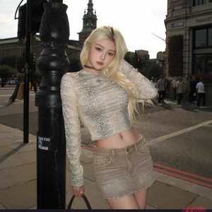SK十字印章修身上衣简约迷彩蛇纹独特内搭长袖