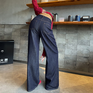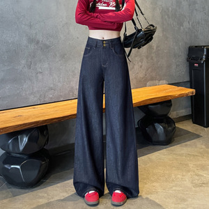 阔腿牛仔裤2025秋装新款女装垂感修身显瘦深蓝直筒裤子女款A6614