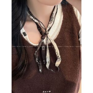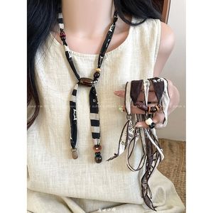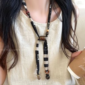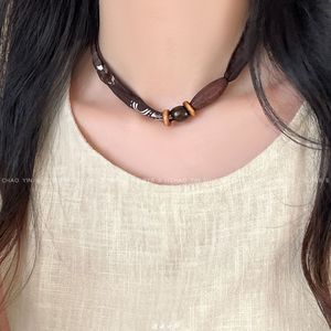 复古波西米亚木珠布艺项链女独特设计感串珠抽拉式丝巾锁骨链配饰