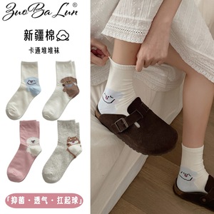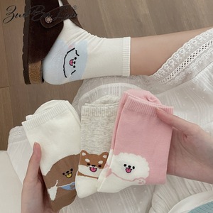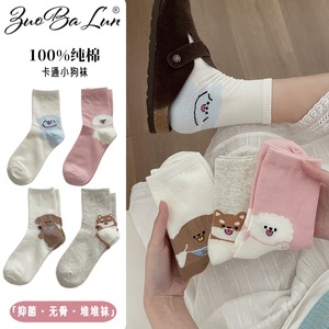 卡通纯棉袜子女中筒袜ins潮春秋日系可爱学院风后跟动物小狗长袜
