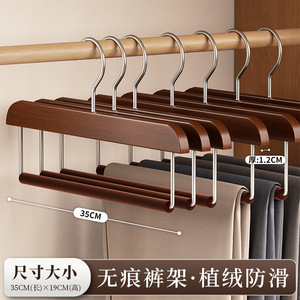 植绒裤架实木无痕防滑裤衣架家用木质裤子收纳衣架衣柜挂裤架裤夹