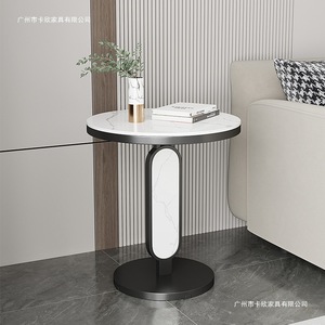 轻奢岩板小茶几客厅沙发边几网红阳台圆桌圆形大理石角几小户型
