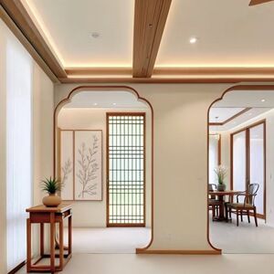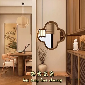 实木轩窗玄关宋式美学入户垭口中式格栅隔断造景定 制屏风如意八