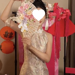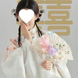 新娘折扇手捧花领证订婚晨袍秀禾搭配新中式手捧花成品扇廷顺