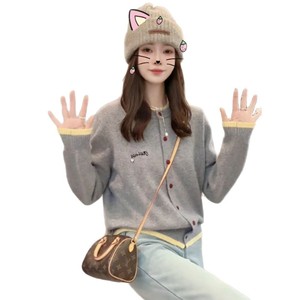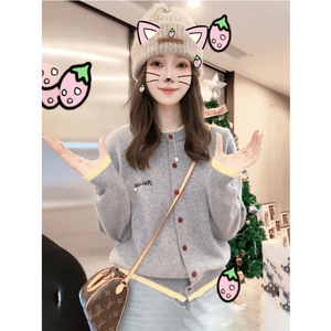 独特超好看短款毛衣外套女春秋季2025新款撞色假两件针织开衫上衣