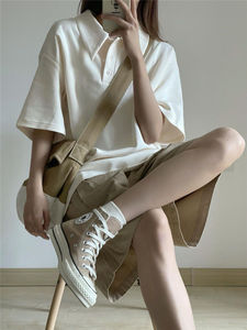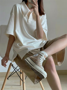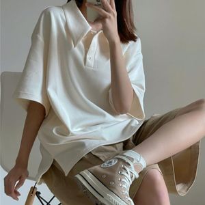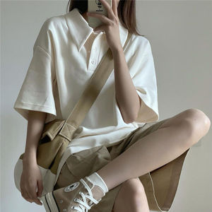 2025夏季新款短袖t恤女宽松韩版学生盐系polo衫学院风纯色上衣潮