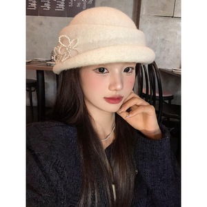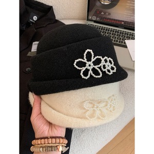 法式赫本风珍珠小花礼帽女千金风优雅气质复古百搭显脸小渔夫帽子