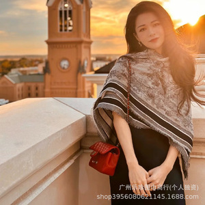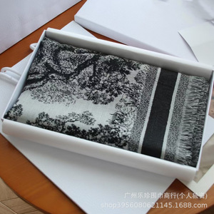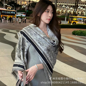 明星同款保暖披肩140方巾 丛林印花双面双色提花真丝羊毛围巾空调