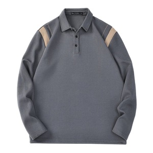 登捷polo领长袖T恤撞色春秋新款男士高级感衬衫领休闲打底衫高级