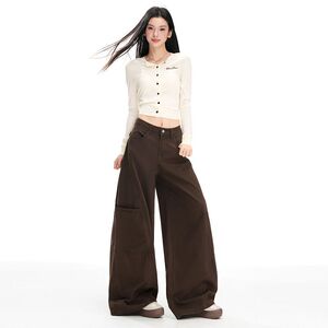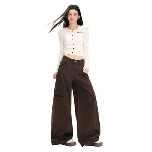 2025秋冬新款美式辣妹工装阔腿高腰显瘦牛仔女裤休闲百搭咖色