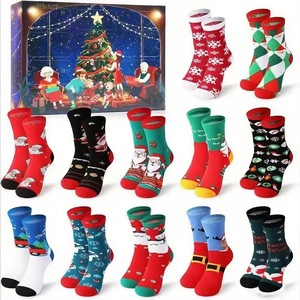 跨境2025圣诞节保暖袜子套装24天倒计时日历盲盒批发新款圣诞袜子