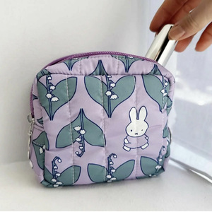 日系花朵兔子卡通印花方形口红包化妆包女生便携月事卫生棉收纳包