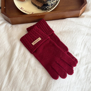 出口韩国日本高品质针织毛线手套女冬季防寒保暖露指触屏柔软百搭