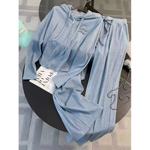 盐系穿搭休闲运动套装女春洋气减龄显瘦蓝色连帽卫衣阔腿裤两件套