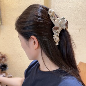 韩版刺绣布艺蝴蝶结抓夹森女风设计珍珠吊坠鲨鱼夹子大号盘发发抓