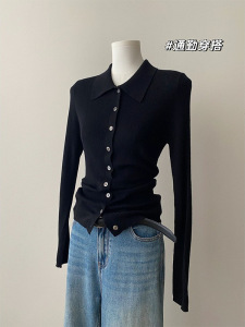通勤休闲POLO领针织极简2025秋冬新款韩版甜美气质针织衫长袖上衣