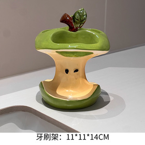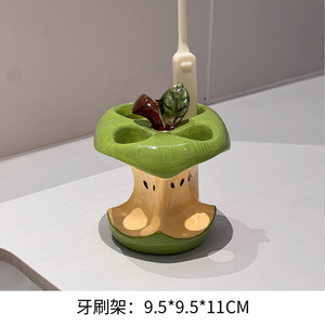 卡通苹果核陶瓷可爱架家用免打孔洗漱台牙膏牙刷置物架子收纳底座
