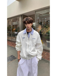 跨境外贸痞帅外套男ins高街潮牌潮流设计春秋帅气宽松百搭夹克上