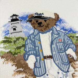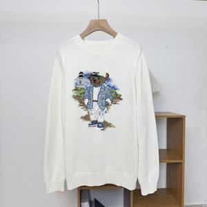 高品质/可扫码RL小熊25年秋冬纯棉重工刺绣女款圆领毛衣休闲长袖