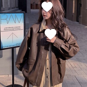 机车皮衣外套女复古2025春秋新款美式休闲百搭棕色皮夹克洋气直发