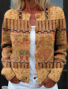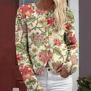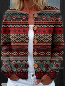 2025欧美跨境爆款女装时尚磨毛几何印花开衫长袖外套