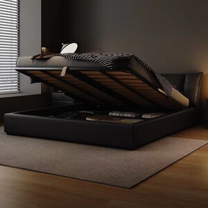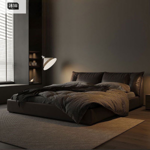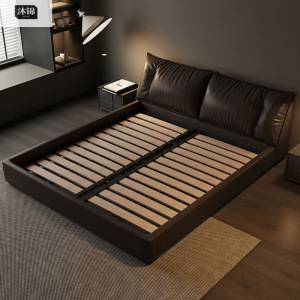 意式极简1.8米真皮床现代简约双人床主卧软包床网红储物家用婚床