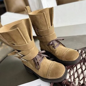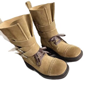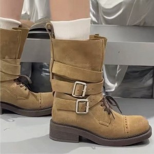 2025早秋新款复古中筒靴马丁靴英伦风厚底皮带扣机车靴百搭骑士靴