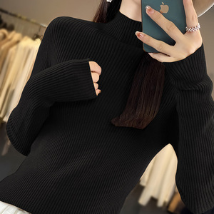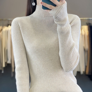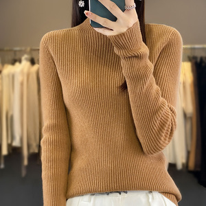 简约气质中领毛衣女秋冬大衣内搭修身显瘦针织衫软糯半高领打底衫