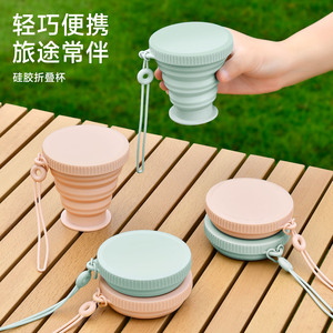 sp sauce新品可折叠杯硅胶户外露营带盖压缩水杯便携可伸缩漱口杯