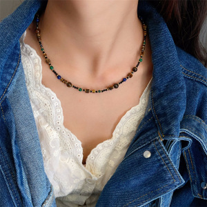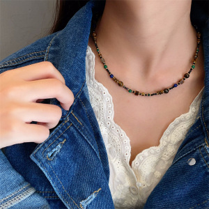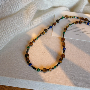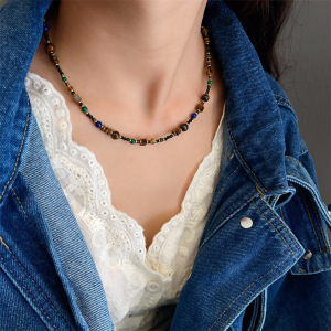 复古原创虎眼石青金串珠项链女小众设计高级感颈链孔雀石锁骨链