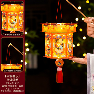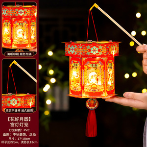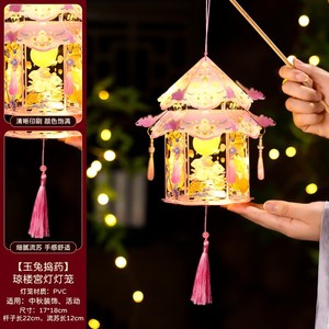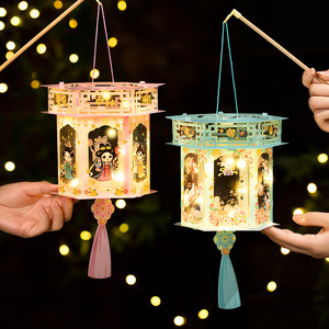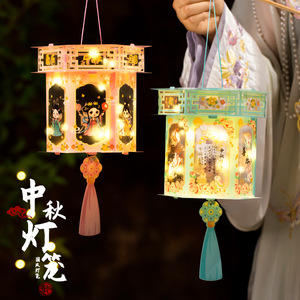 中秋节兔子灯笼2025新款手工制作diy材料包手提古风发光六角宫灯