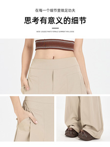 卡其色韩版休闲裤女春秋2025新款高腰显瘦慵懒宽松阔腿高级西装裤