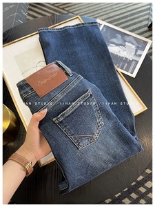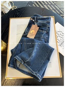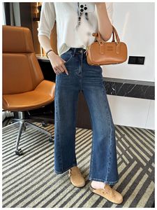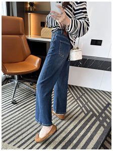 双身高制版!~斜裁剪阔版直筒牛仔裤女2025新款秋宽松弹力阔腿裤