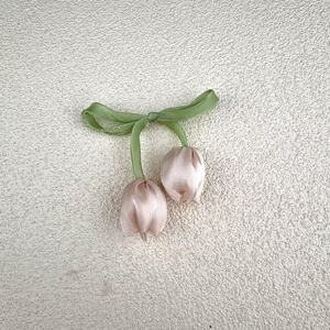 2025母亲节双头郁金香蝴蝶结蛋糕装饰网纱郁金香花苞丝带蝴蝶结