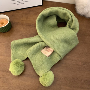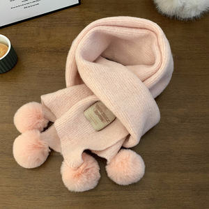 灰色毛球针织围巾女冬季韩系高级感学生日系加厚保暖毛线围脖披肩