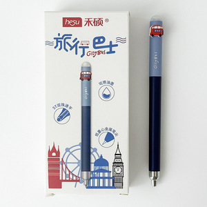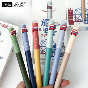 禾硕KC824旅行巴士st双珠0.5mm速干中性笔学生刷题练字可擦晶蓝笔