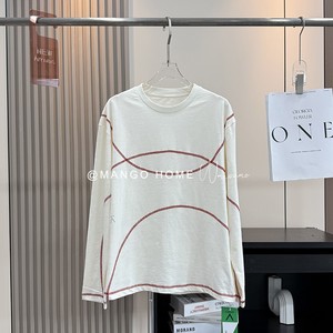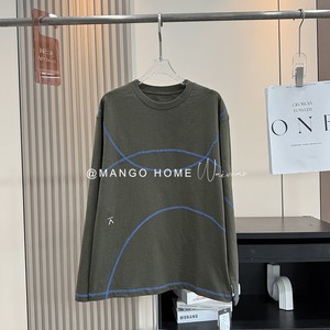 男女情侣款吸湿透气明线户外运动竹节棉长袖T恤打底衫9057