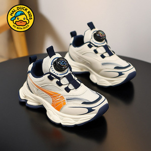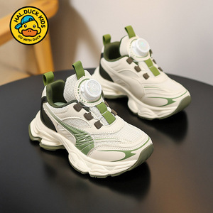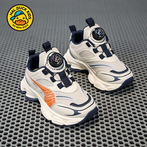 小黄鸭童鞋2025秋季款透气双网旋转扣男女童运动鞋防滑舒适老爹鞋
