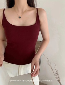 暖小艾702背心磨毛一体杯吊带背心女秋冬保暖美背带胸垫纯色内搭保暖背心上衣细肩带
