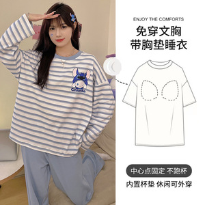 2025长袖睡衣女秋季带胸垫薄款卡通少女学生圆领冬天可外穿家居服