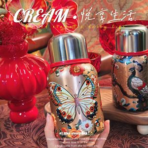 抖音爆款国风复古孔雀锦鲤保温杯316不锈钢双层真空水杯子国潮风