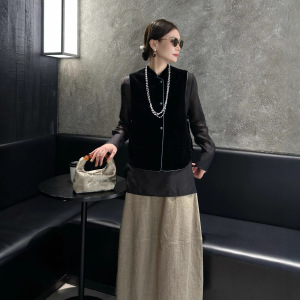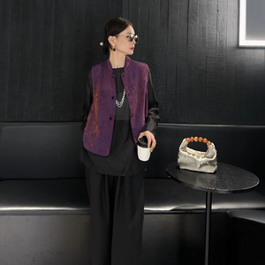 2025秋款篙奢真丝丝绒内衬流光缎精致彩扣双面双穿国潮马甲不退换