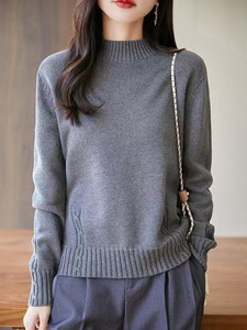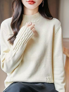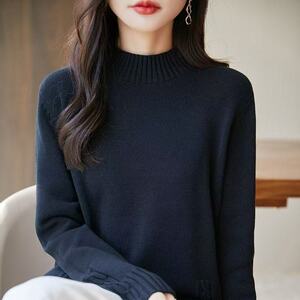 加厚半高领针织衫女2025秋季新款宽松纯色保暖内搭打底秋冬新款女