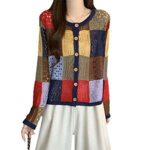 实拍年早秋新款时尚圆领镂空长袖针织开衫女宽松显瘦上衣潮