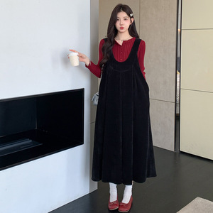 孕妇装秋装2025新款时尚法式坑条开扣打底衫背心裙中长款孕妈穿搭