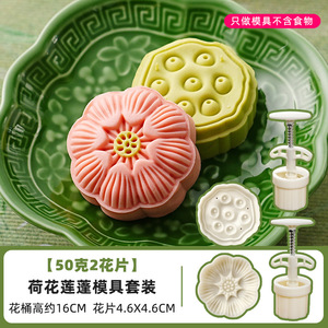 月饼模具新款2025荷花莲蓬国潮风做绿豆糕点心中式手压磨家用烘焙