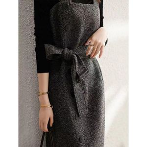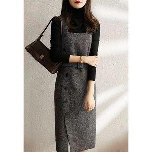 毛呢背带裙女秋冬法式2025新款优雅气质百搭开叉小香风背心连衣裙
