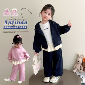 中小童套装宝宝童装2025新款拉链两件套春秋季儿童时尚洋气女童