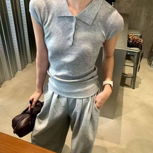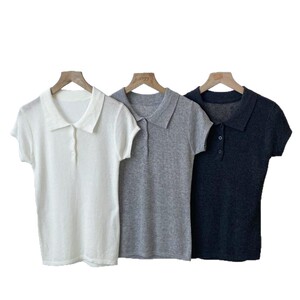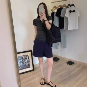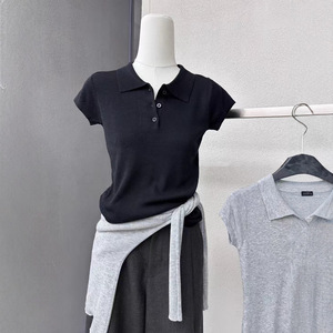 韩系小众!2025秋季新款气质显瘦百搭polo翻领设计短袖针织上衣女