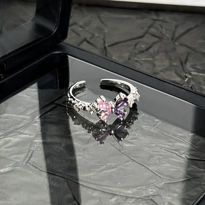 粉紫彩钻梦幻甜酷风蝴蝶爱心冷淡风轻奢开口戒指女叠戴高级感指环